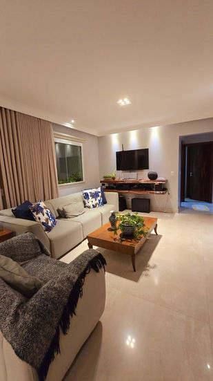 Os ambientes são integrados e bem distribuídos, com sala de estar e jantar em conceito aberto, além de uma sacada gourmet com vista panorâmica da cidade.